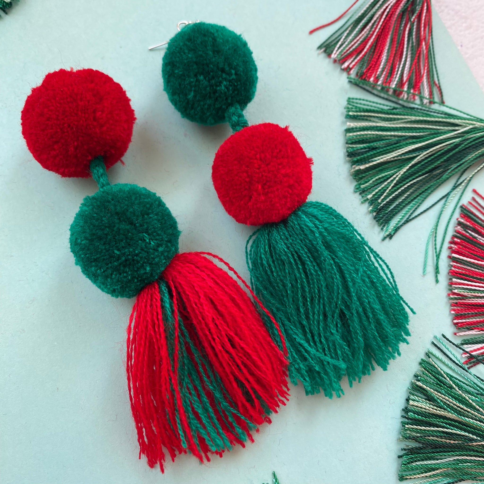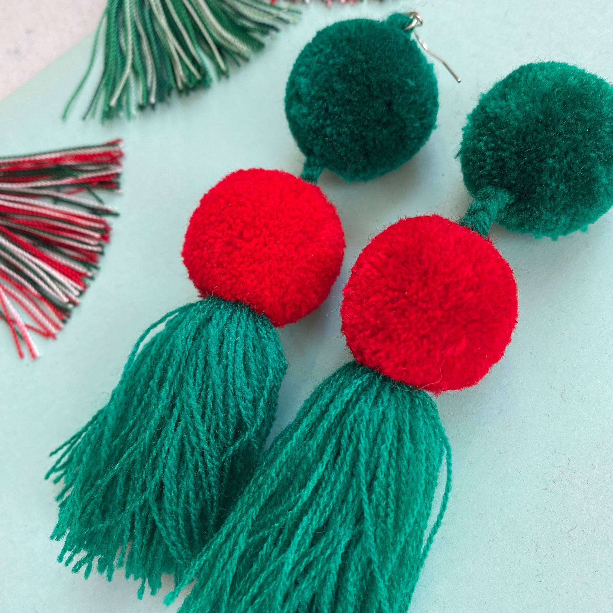Super light-weight pompom tassel earrings handmade in Guatemala.
