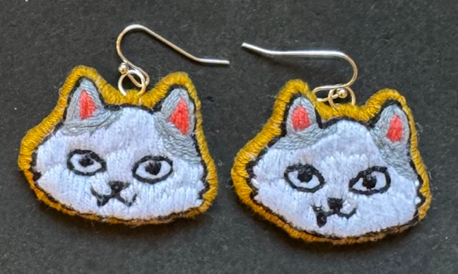 Super lightweight hand-embroidered CAT earrings from our #SantaLuciaxSWIET #artWORK #empowARTment project in Guatemala.